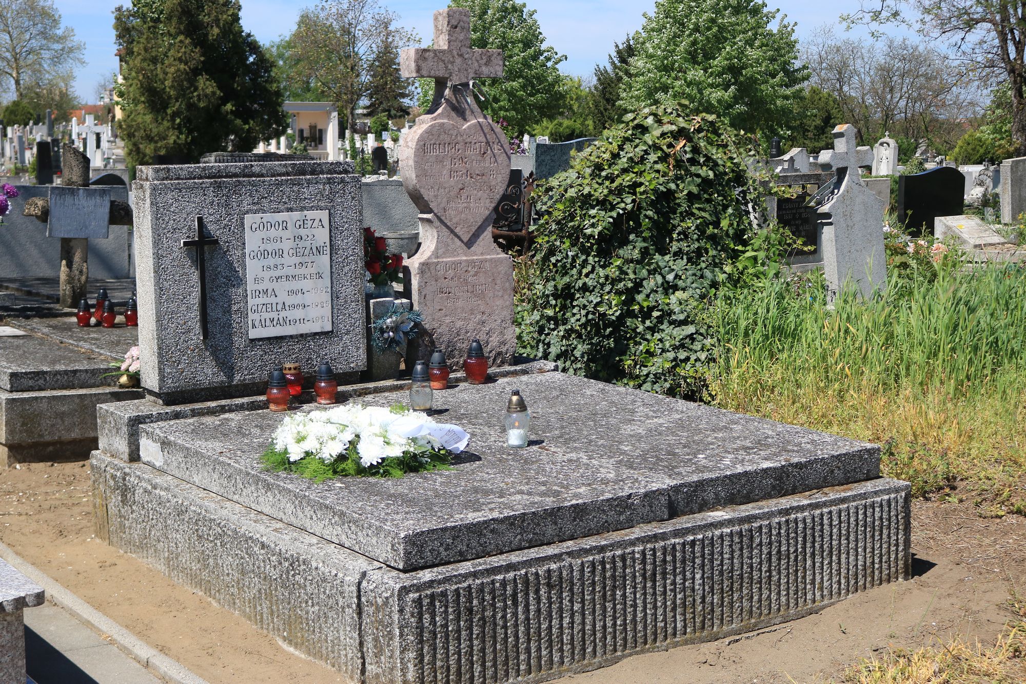 A funerális objektum része egy XIX. század közepén faragott sírjel. Ezt a korábbi alkotást a Gódor család sírtáblája mellé helyezték. Mind ezen a, közel százhetven éve készített, szív és kereszt kombinációjából alkotott sírtáblán, mind a XX. század végén elhelyezett feliratos, a Gódor család itt nyugvó tagjait jelölő táblán is megtalálható Gódor Géza (1861-1922) neve.