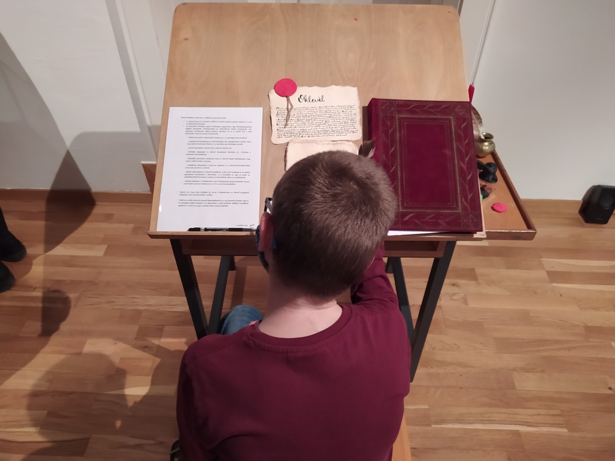 A Gyerekek a Premontrétől a Zagyva-völgyéig c. kiállításunk megtekintése után oklevelet készítettek. A felszövegezett papírlapokat kávéba mártották, hogy régies hatást érjenek el, majd száradást követően gyurmából készült függőpecséttel látták el. Köszönjük nekik a látogatást!