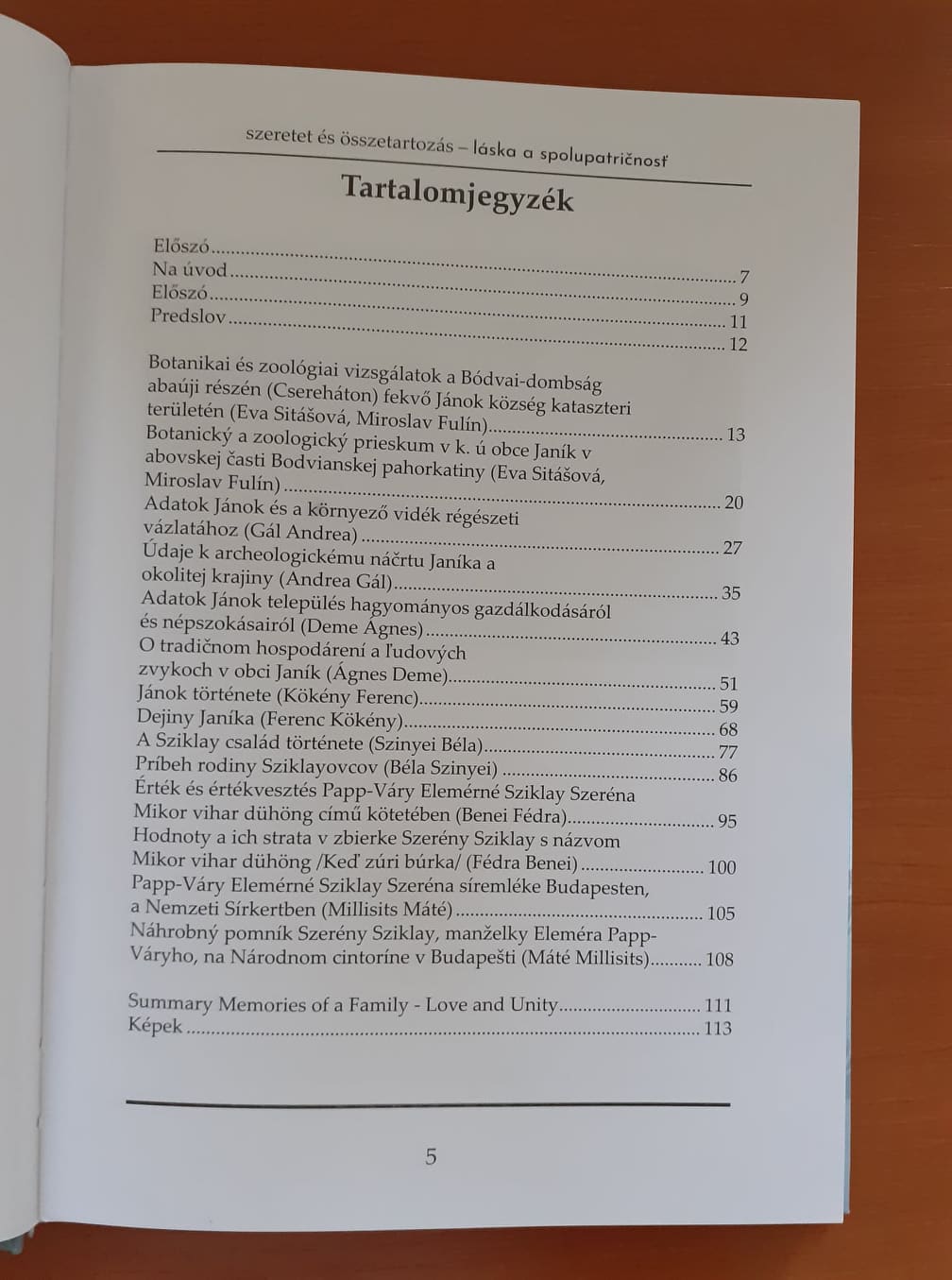 A Szinyei András, Hatvan Város alpolgármestere és Begala Gyula, Jánok Község polgálmestere előszavával induló kiadványban változatos tanulmányok olvashatók Jánok és a Sziklay család múltjáról. Cikket közölt Eva Sitášová és Miroslav Fulín Jánok botanikai és zoológiai vizsgálatáról, Gál Andrea, a település régészeti vázlatáról és Deme Ágnes, Jánok hagyományos gazdálkodásáról és népszokásairól. A tanulmányok sora Kökény Ferenc a falu történetét feldolgozó munkájával folytatódik, majd Szinyei Béla Sziklay családhoz kötődő emlékei következnek. Az írások sorát Benei Fédra cikke (Érték és értékvesztés Papp-Váry Elemérné Sziklay Szeréna Mikor vihar dühöng című kötetében) és Millisits Máté munkája (Papp-Váry Elemérné Sziklay Szeréna síremléke Budapesten, a Nemzeti Sírkertben) zárja.
